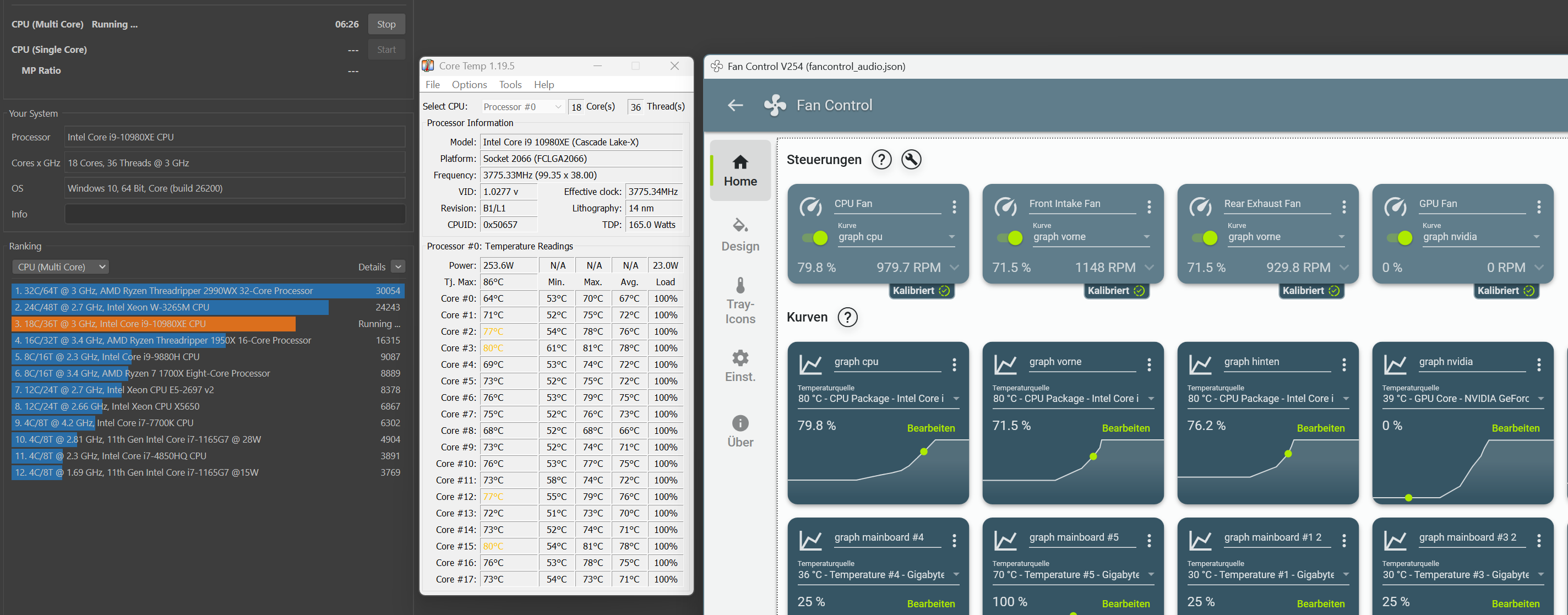 s. hierzu die Screenshots während des Cinebench R 23-Benchmarks von CoreTemp und FanControl