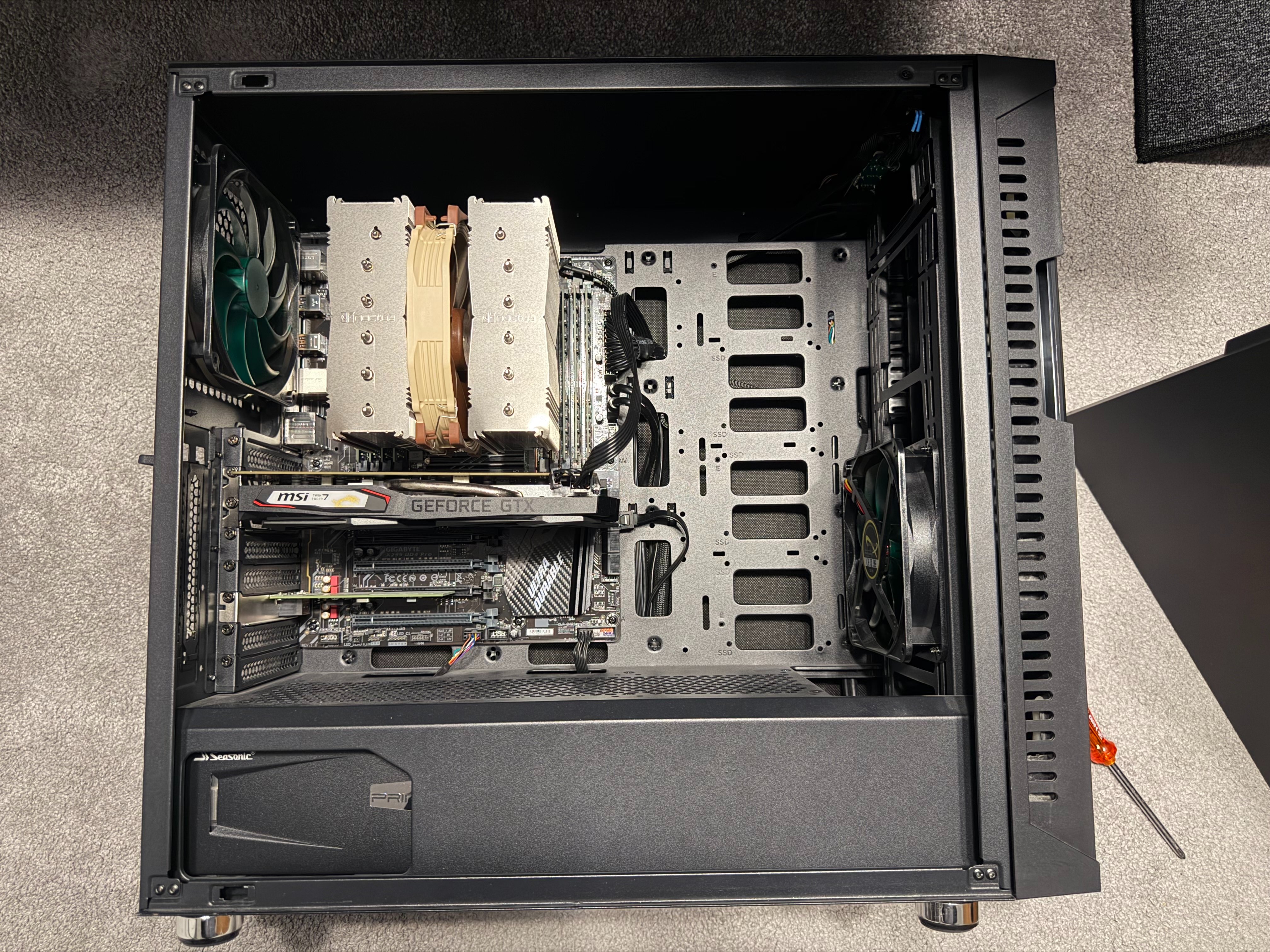 - CPU-Kühler: Noctua NH-D15S – kühlt die 165W TDP der CPU auch unter Dauerlast zuverlässig bei niedrigem Lärmpegel