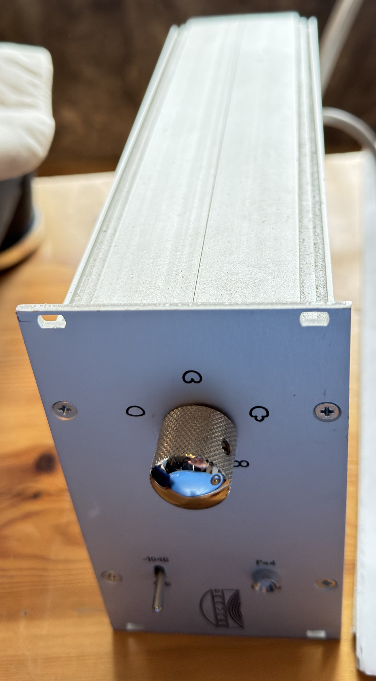 Eines der ersten handgebauten Röhrenmikros von Dirk Brauner mit der Originalröhre.