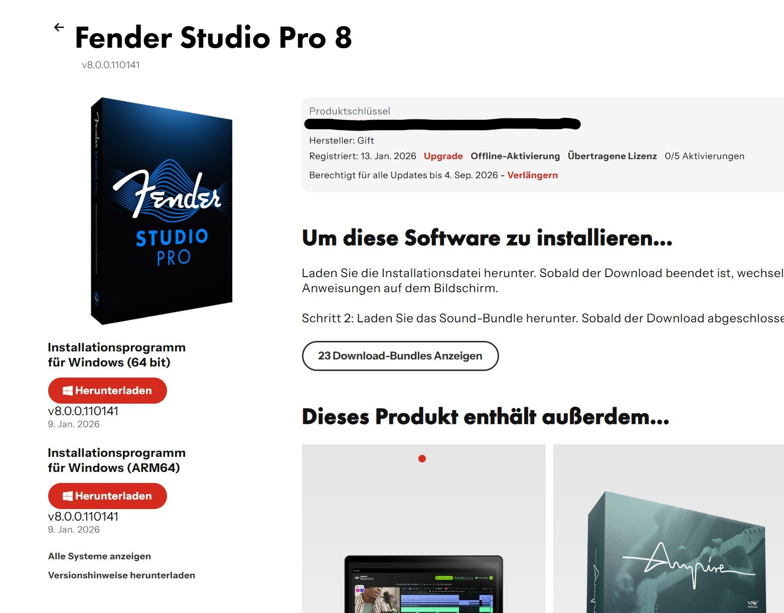 ich räume auf und verkaufe meine Version vom neuen Studio One, also von Fender Studio Pro 8. Wer will kann entweder meinen Account übernehmen (es können alle Daten geändert werden) oder ich mache eine Lizenzübertragung. Die zusätzlichen Kosten (ca. 25-30 Euro) trägt dann der Käufer. Die kostenlosen Updates laufen bis zum 04. September 2026.