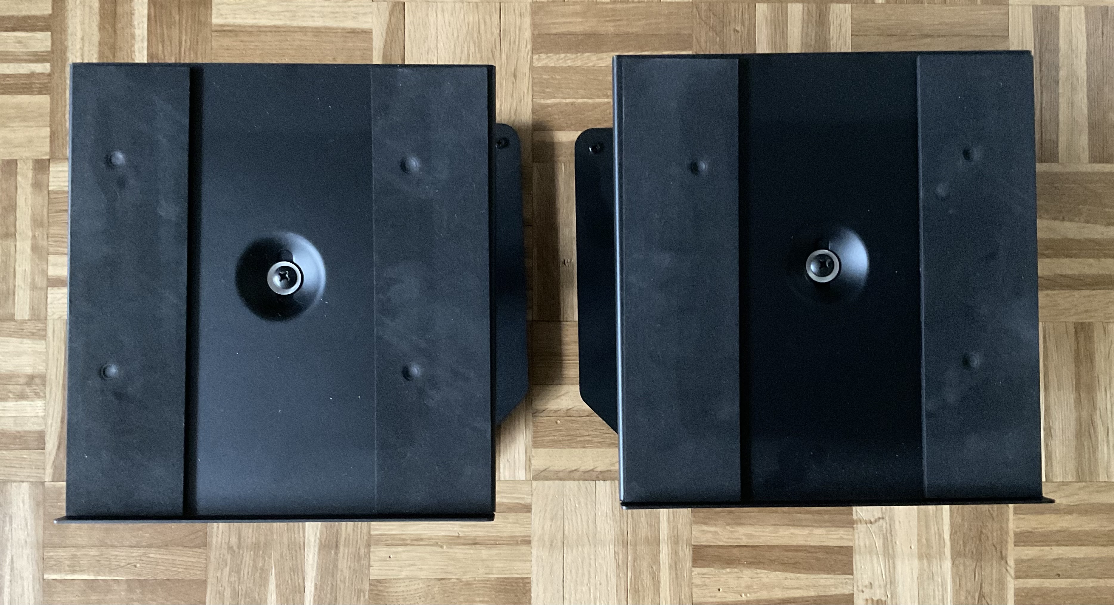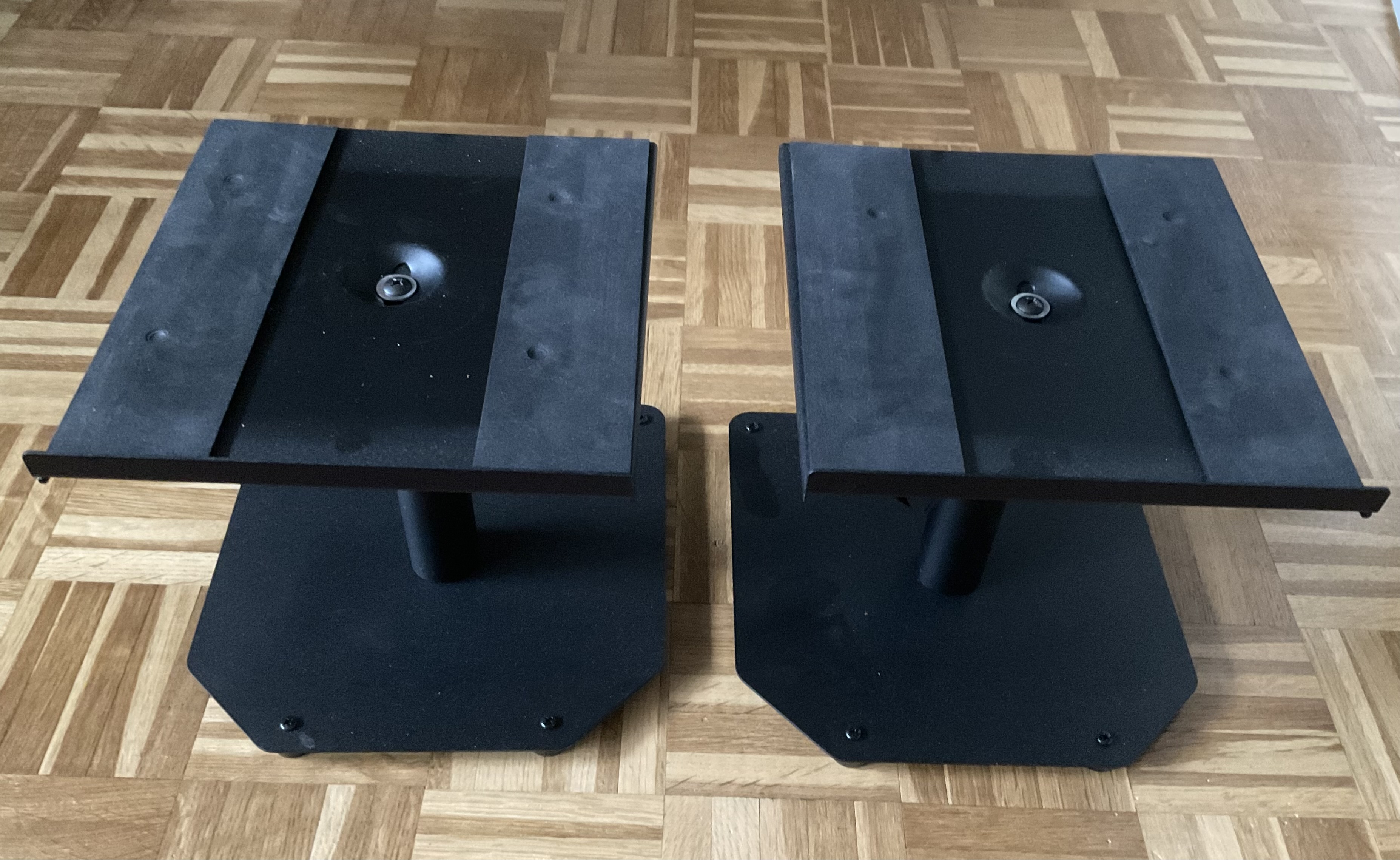 Meine Neumann K120 hatten darauf locker Platz. Die Ständer sind höhenverstellbar (zwischen 22,5 cm und 36,5 cm)