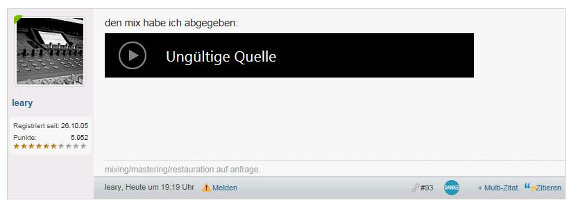 Danke. Die einfliegenden Gitarren sind natürlich ein Fehler, das muss ich korrigieren.ach, dein mix ist auch da... auch cool. du bist mehr in die oberen mitten gegangen als andere mixe. coole gimmicks mit einfliegenden gitarren
