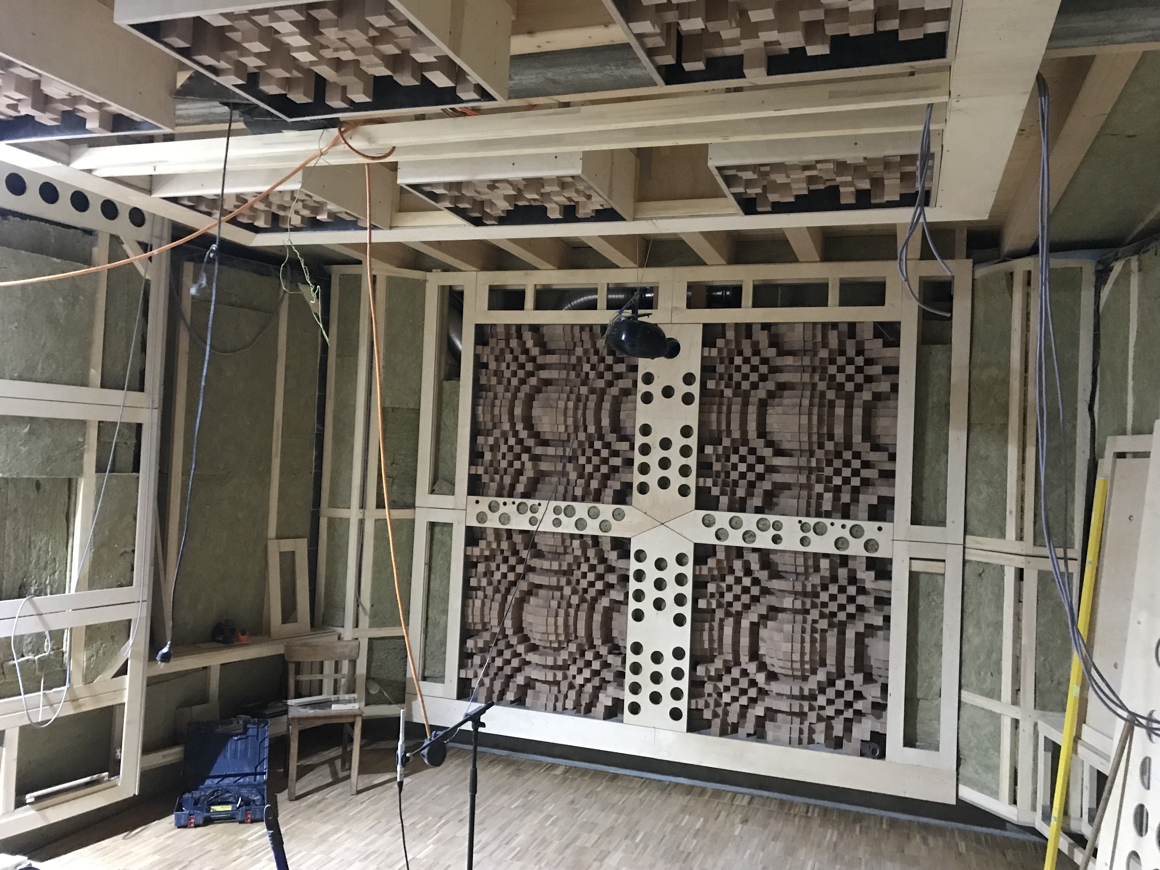 Warum wurde die Rückwand nicht komplett durchgebaut, bzw das Muster korrekt fortgesetzt? So vermischen sich die Diffusionswellen und bilden keine Einheit. Eigentlich ist der Sinn ja der, das Muster immer weiter fortzusetzen. Erst durch die Wiederholungen ergibt sich ja auch eine sehr ausgeprägte neue Wellenfront für die jeweilige Frequenz und Richtung.