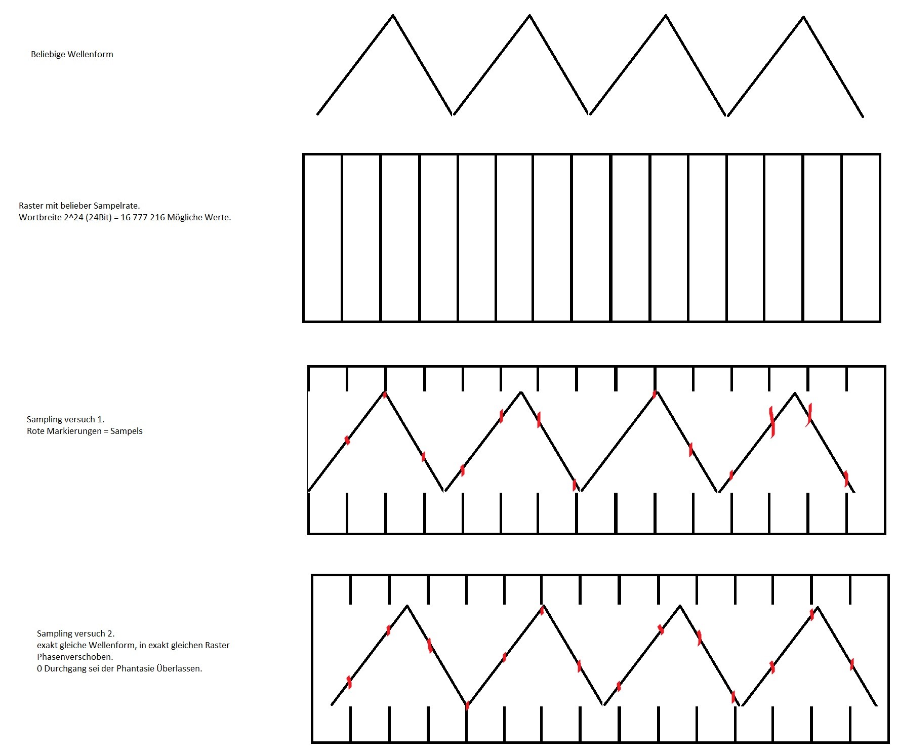 Aber dennoch ist die Wahrscheinlichkeit, sehr gering, dass die "zufällig entstanden Werte" mit den tatsächlich gesampelten Werten 100% übereinstimmen, und die Differnz von mehreren gesampelten- und "zufällig entstandenen"-Werten wird wahrsch. auch ein Rauschen sein (da mehr oder weniger Zufällig).