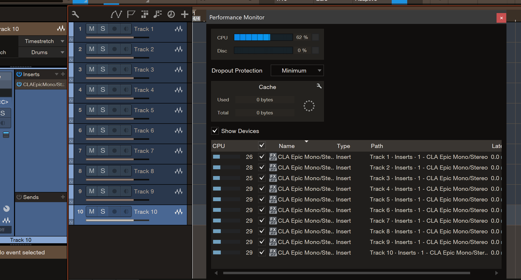 Ich habe gerade im PastorZaster Thread einen Mix hochgeladen, der ist fast komplett mit AA in Reaper gemischt (mein erster Reaper Mix-Versuch). Ich komme da auf 30% CPU Auslastung. Wirklich krass was da so geht. Wirklich sparsam war ich da nicht.