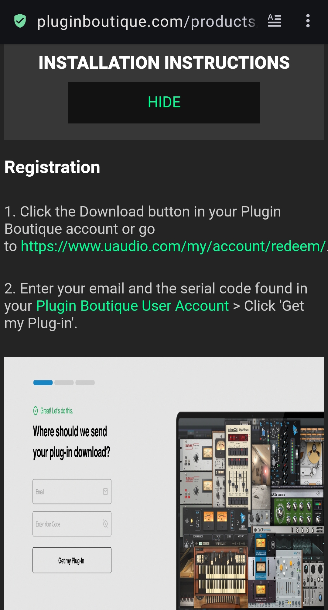 Also ich habe jetzt mal geschaut, ich habe zwei verschiedene UAD Plugins bei Plugin Boutique, bei einem taucht unter Serial Number ein Code aus 4 jeweils vierstelligen Zeichen auf, bei dem anderen ein Redeem Code und der besteht auch wiederum aus 4 mal 4Zeichen, ist also wohl beides das gleiche. Also als Beispiel TZ3C-GBX1-TKI8-TJ6K oder so ähnlich. Das sieht bei dir auch so aus oder? Unter dem Download öffnet sich dann der obige Link, ich hätte gedacht, da kommt einfach nur ein Link zum Installer von UAD Connect. Aber es ist die Seite, bei der du dann den Code eingeben kannst.