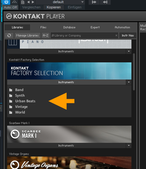 ... Kontakt ist richtig, in KK dann erst Kontakt öffnen und dann die Instr suchen... wie gesagt, nervig...