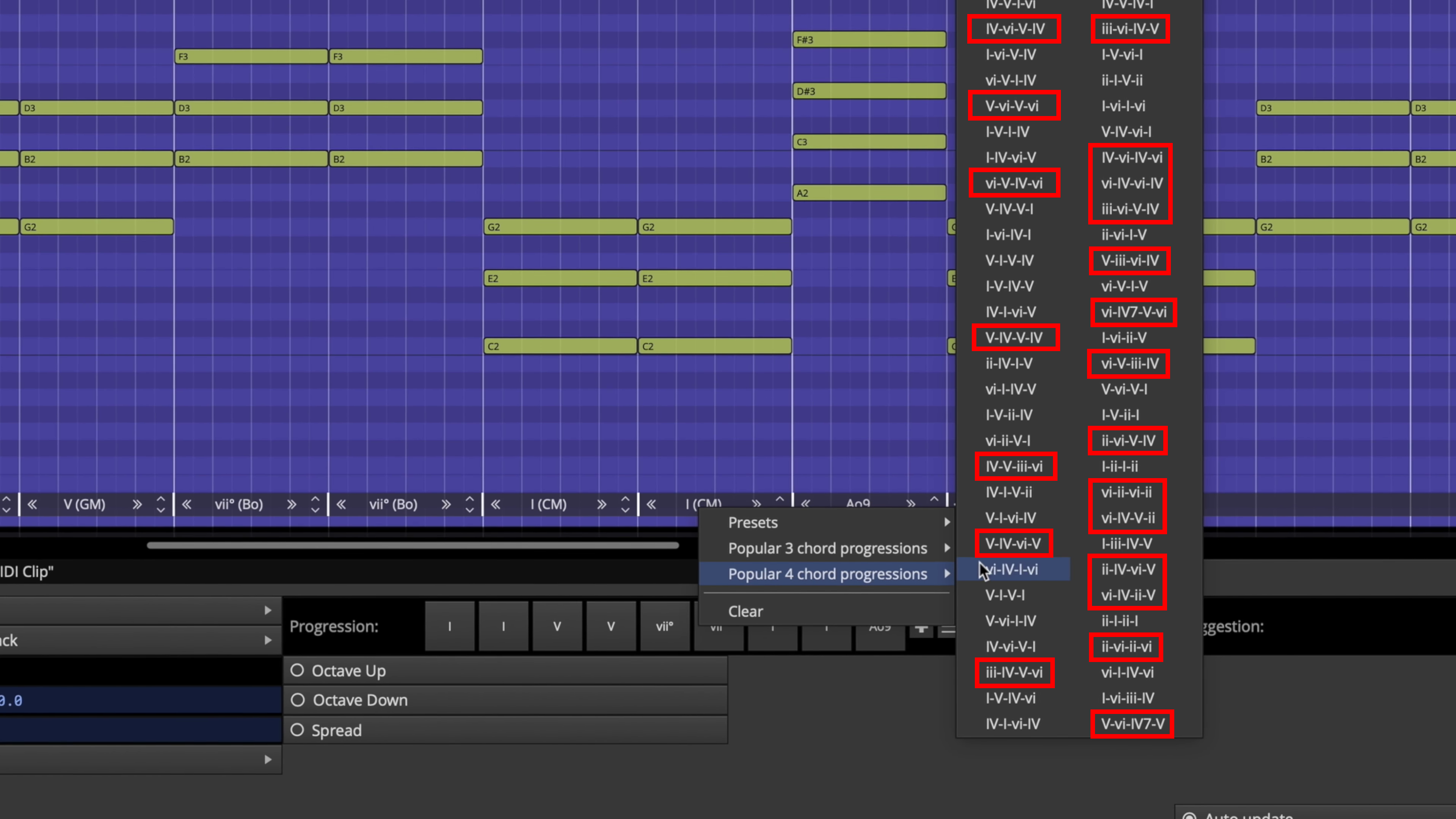 Es gibt ja einige DAWs, die schon fertige Akkordfolgen bereitstellen. Hier zum Beispiel Waveform von Tracktion.
