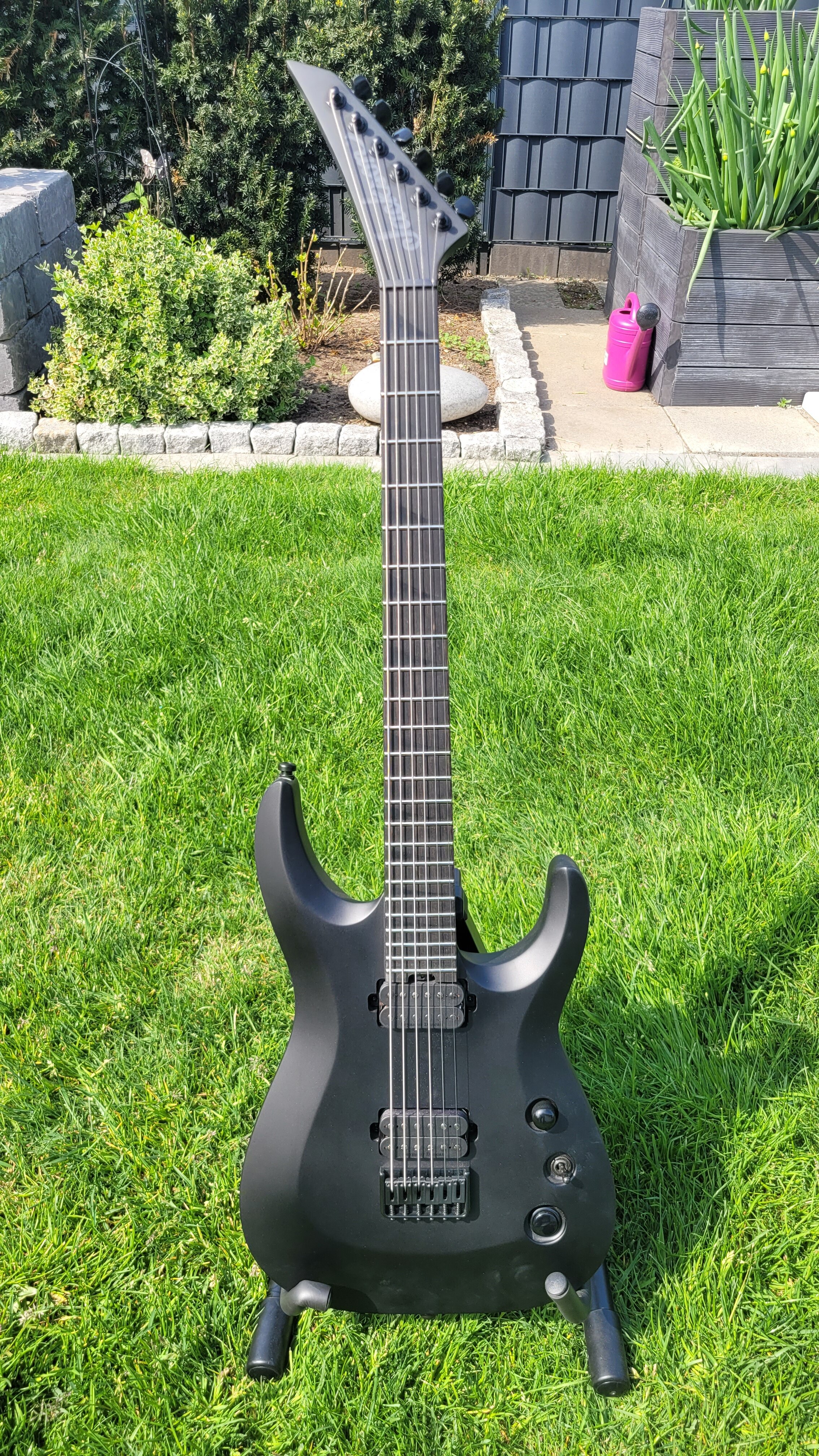 Nice, voll murdered outNGD!!! Bin ja sonst eher der Mutiscale Typ, wollte aber immer schon mal ne Baritone testen. Hatte die hier schon länger im Auge, war aber oft ausverkauft. Jetzt zu nem guten Kurs abgestaubt. Wirklich ein tolles Teil. Den Bridge Pickup werde ich noch gegen nen Black Winter tauschen, den ich hier noch liegen habe. Ansonsten aber wirklich perfekt, habe noch nie einen so geraden Hals mit so perfekt abgerichteten Bünden und so einer niedrigen Saitenlage ab Werk gesehen. Und das obwohl da recht fette Saiten drauf sind. Von mir gibts nen Daumen nach oben