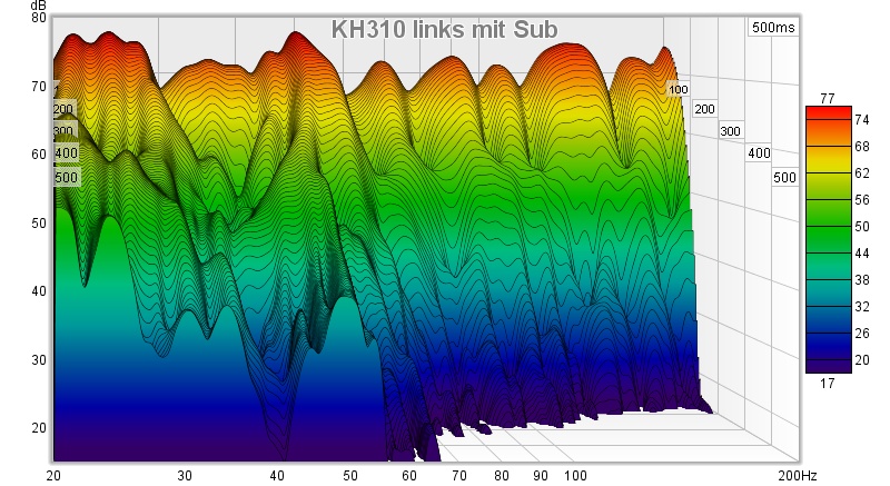Jetzt habe ich aber um die 50 Hz eine ziemliche Eigenresonanz in dem ansonsten recht gleichmäßig ausschwingenden Raum. Für mich als jemand, der hauptsächlich mit Klassik zu tun hat, ist das wahrscheinlich weniger schlimm, als wenn ich elektronische Musik mischen würde. Trotzdem denke ich, dass mir das die Wiedergabe ein bisschen zermatscht: