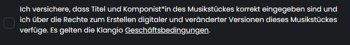 - Retractions: Urheberrechtsinhaber können verlangen, dass bestimmte Werke nicht transkribiert oder angezeigt werden. Klangio entscheidet aber nach eigenem Ermessen, ob sie diese entfernen.