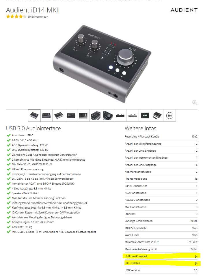 Muss mal mein mobiles Setup konfigurieren, da ist das iD14 meines Bruders die Schnittstelle für externen Wandler.