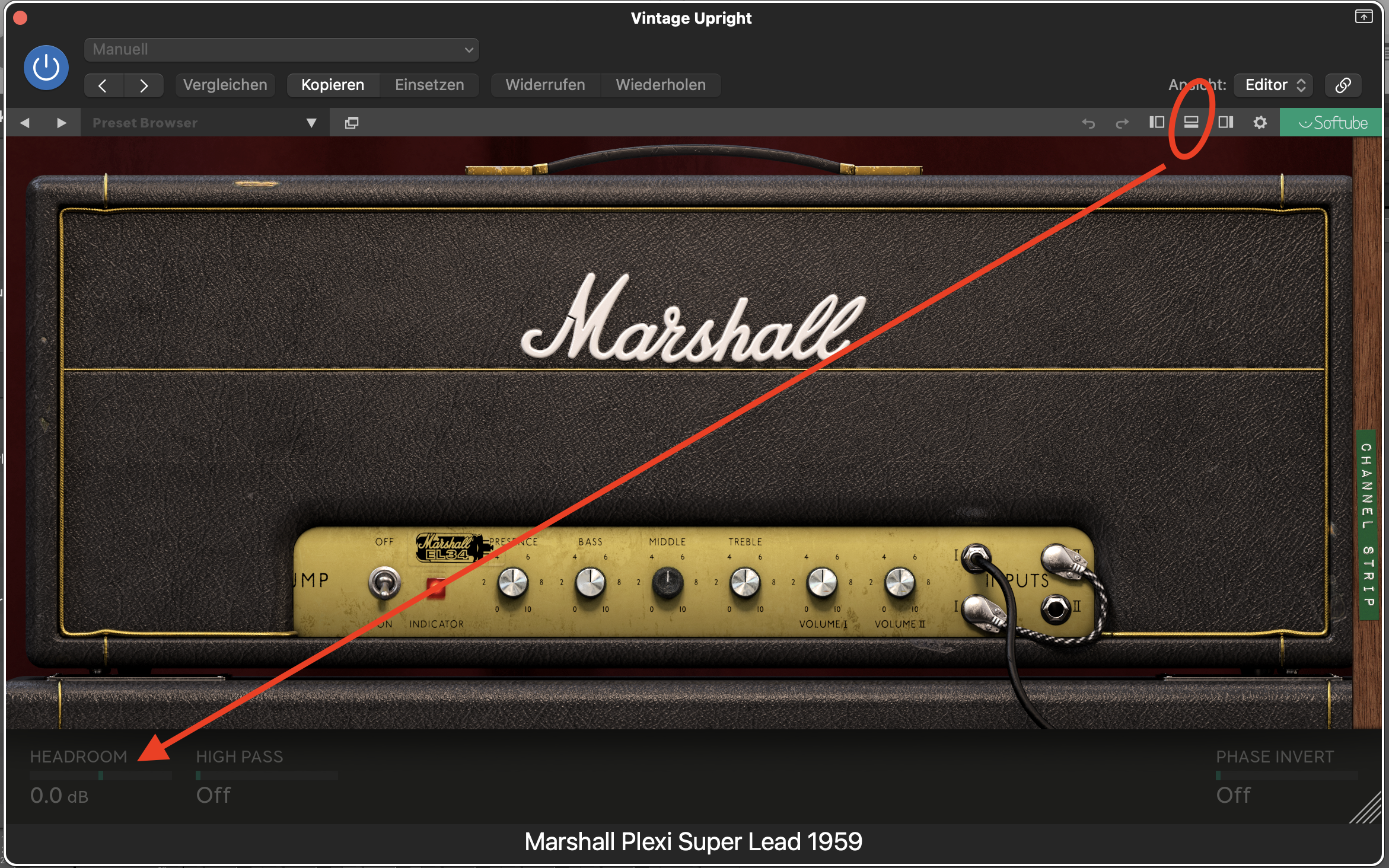 Gibts da nicht….Bei den Softube-Amps findest Du das in der erweiterten Darstellung als "Headroom":