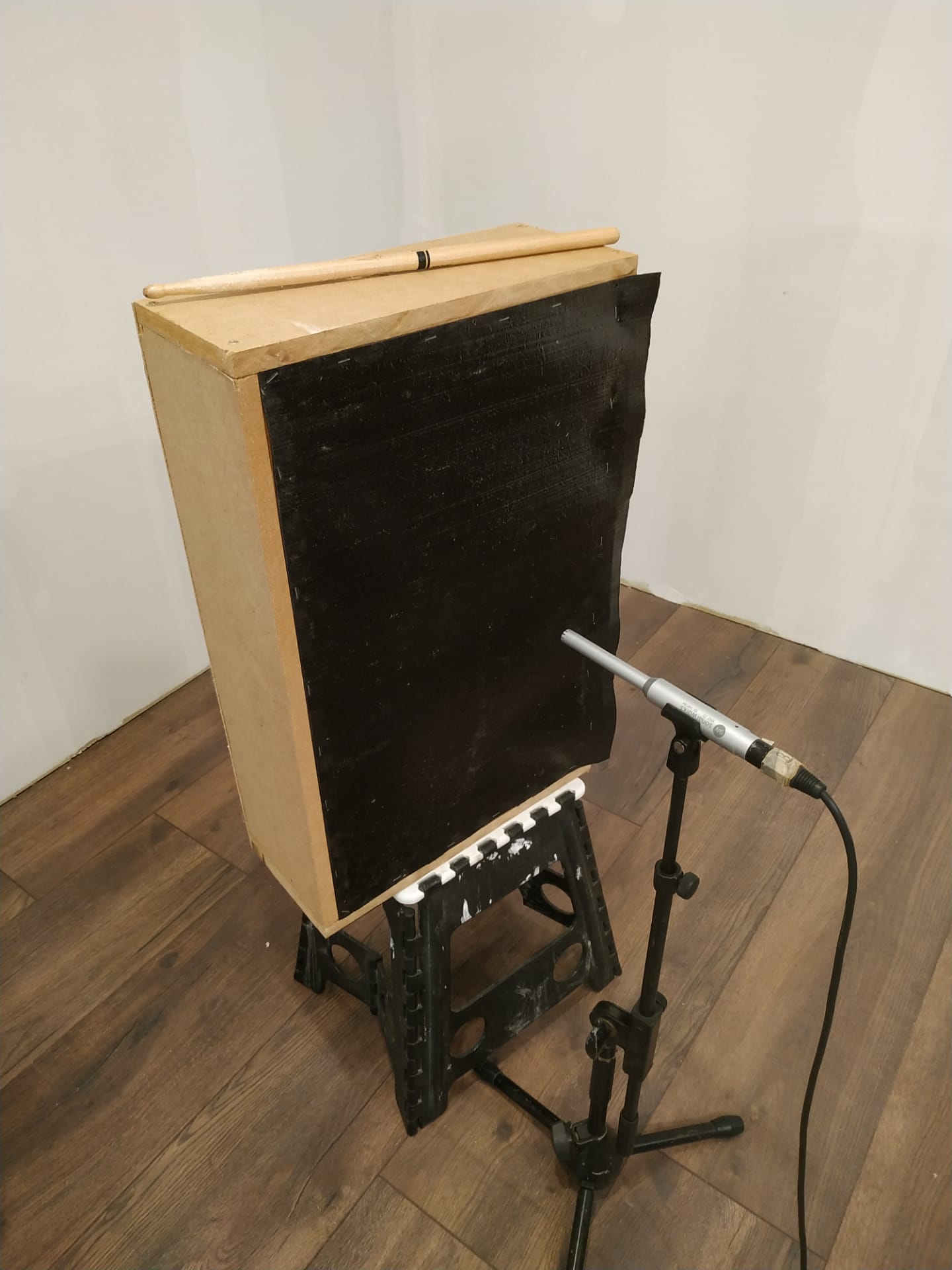 Wenn die Gummibahn ohne das minimale stramm ziehen fest getackert wird... sackt die Membran ein, wenn der Kasten aufgestellt wird, und berührt dann vielleicht die Steinwolle... nix gut...