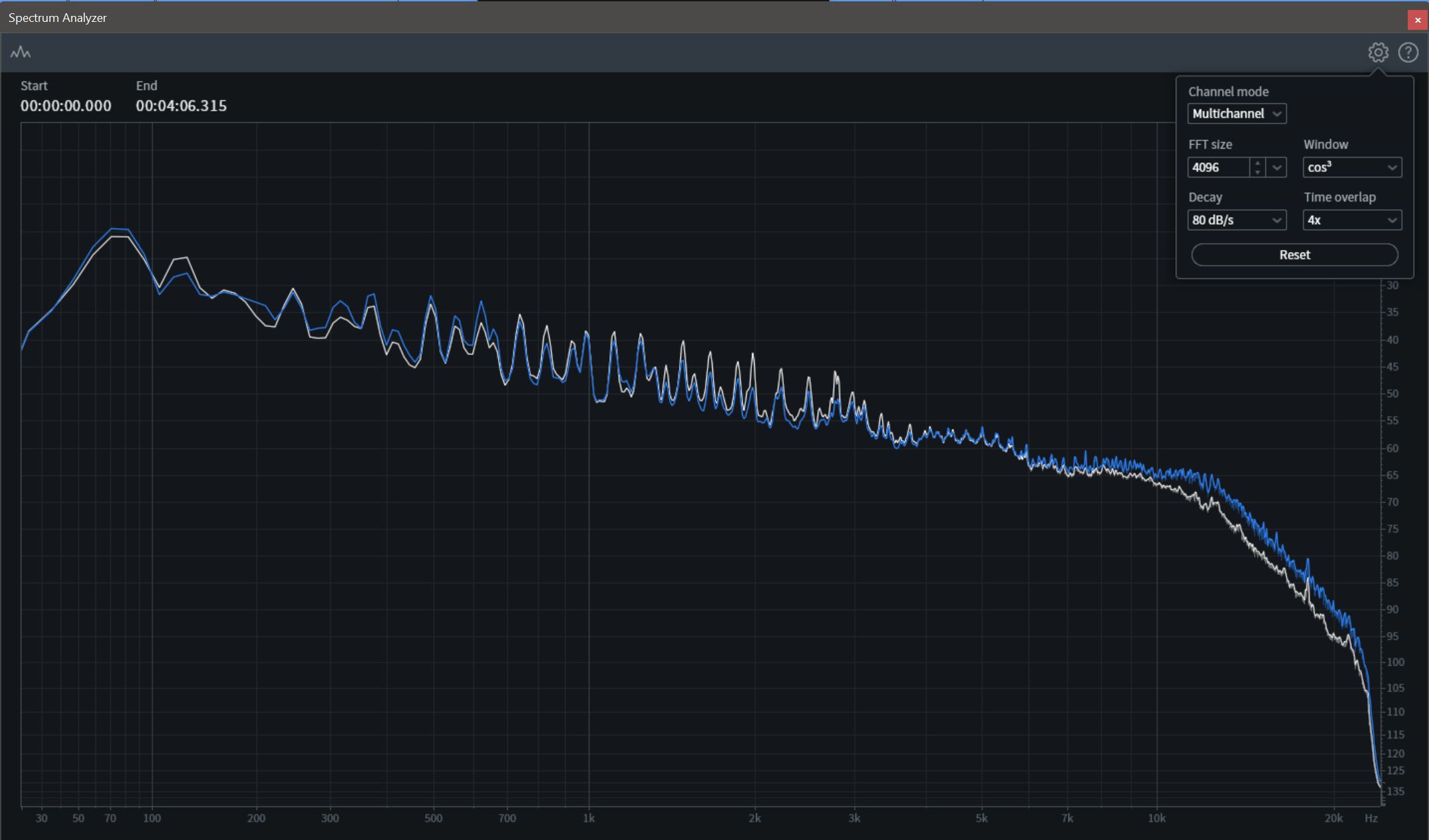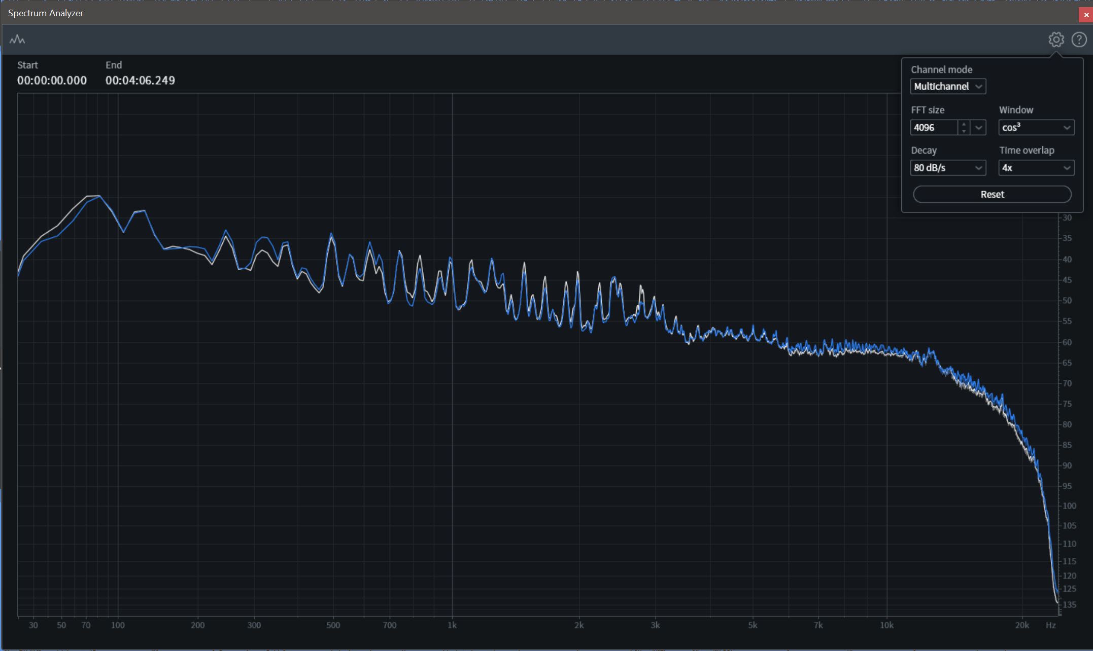 Hier mal Frequenzganganalyse und Statistik meines Mixes...