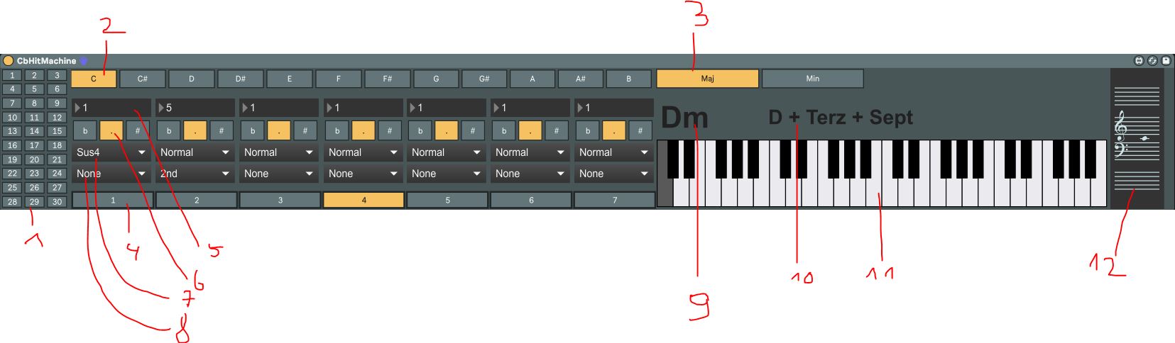Ja das habe ich schon drinne. Muster wie I IV VI I lassen sich schon spielen (ohne Verminderung/Erhöhung oder akkorderweiterung - das ist der nächste schritt.Ferner solltest du unbedingt über Stufenakkorde zumindest der Dur-Tonleiter, womöglich aber auch über Abwandlungen Bescheid wissen, um sowas einbauen zu können.