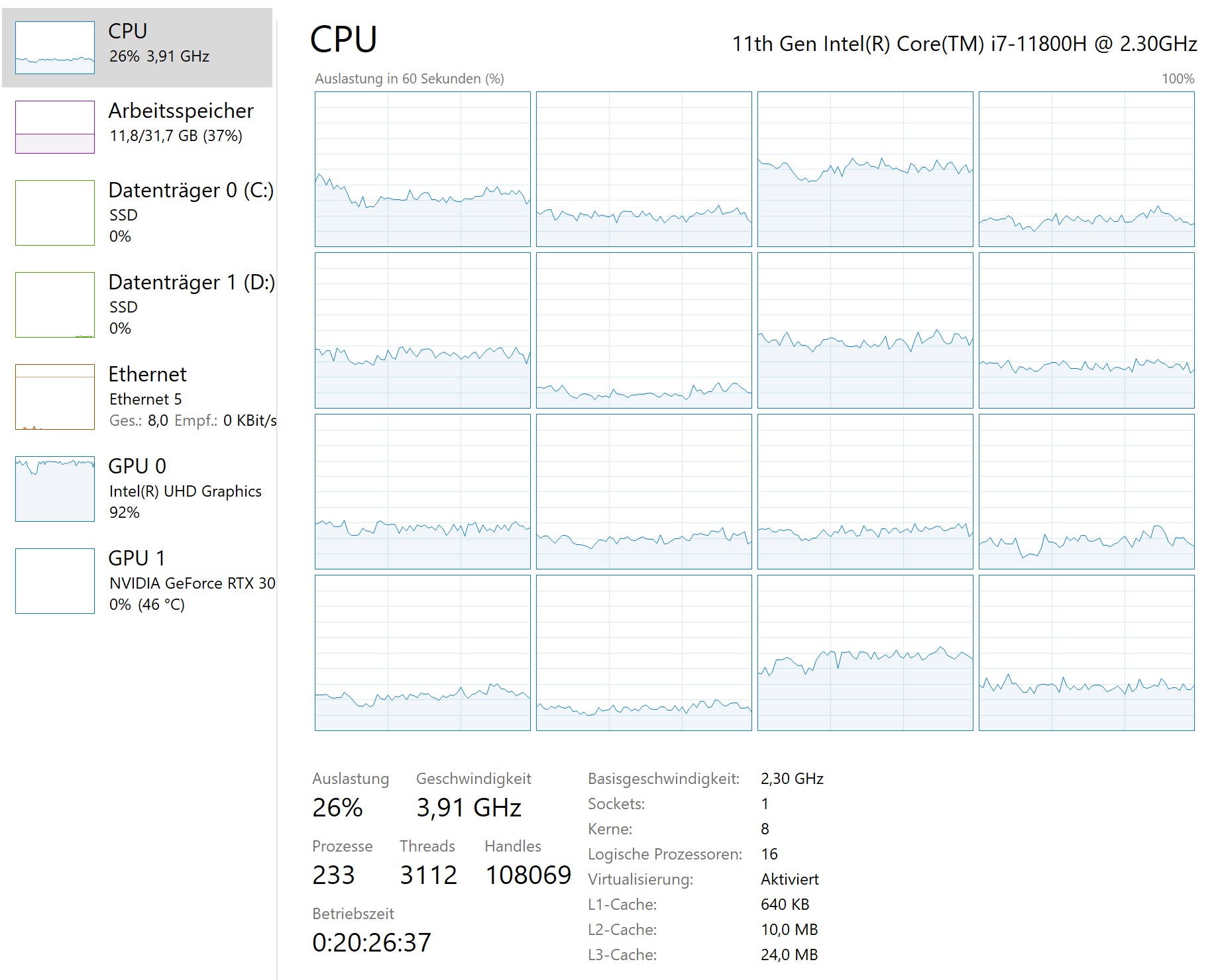 - Welche Stellschrauben habt ihr bei Windows (11 Pro in meinem Fall zusammen mit Intel i7-11800H Laptop) entdeckt? Gibt es da wichtige System Änderungen, die über das „Energiestatus = Beste Leistung“ hinausgehen? Evtl. Einstellungen im Bios?