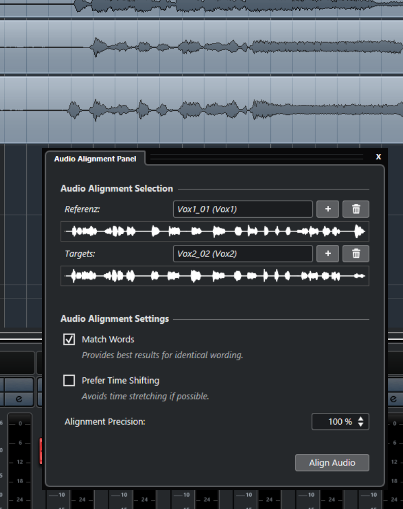 Ist wirklich absolut intuitiv. Bei dem Beispiel von mir sieht man, dass es viel intuitiver funktioniert als Revoice. Die Extra Silbe auf der unteren Spur hätte Revoice voll durcheinander gebracht. Die "Match Words" Funktion in Cubase scheint es wohl zu bringen.