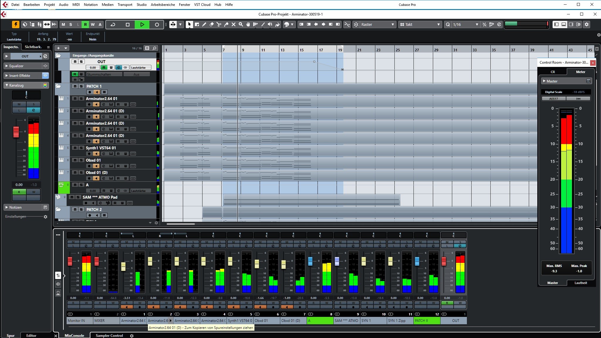 Ich arbeite innerhalb von Cubase mit relativ großen VST-Synth Patches, welche ich alle innerhalb eines Ordners zusammenfasse und auf eine Gruppe rausspiele.