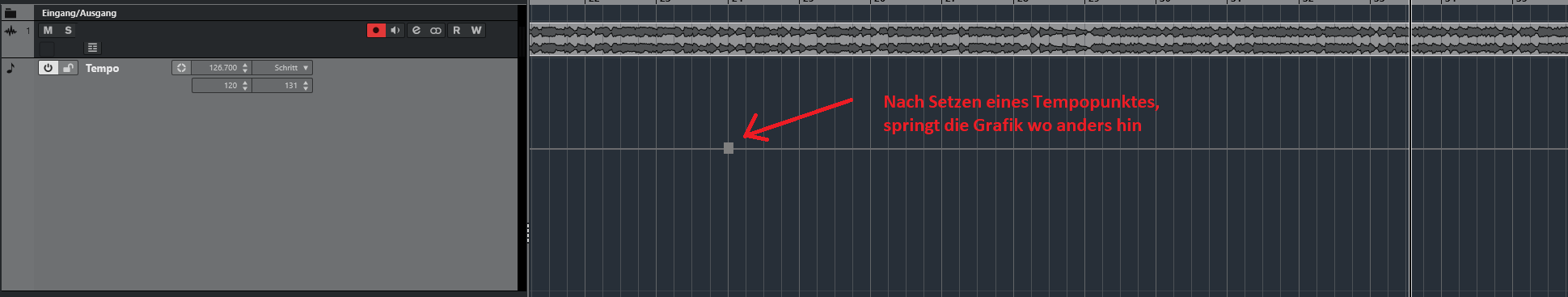 Ja, das nervt.Bei setzen eines Tempopunktes in der Tempospur, springt die Spur irgendwo anders auf der Zeitachse hin.
