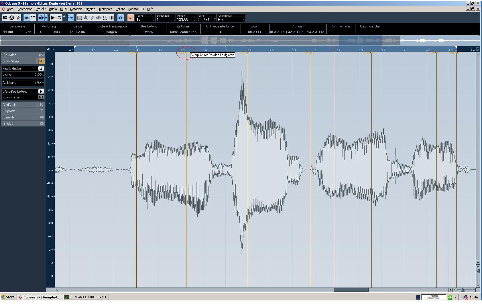 der Vorgänger Version funktionierte es so, dass ich mit der Maus den Warp Anker "oben" angefasst habe. Lt. Handbuch hat sich das auch nicht geändert. Jedoch verändert es jedesmal das Sample, wenn ich den Anker dort bewege. ( Strg oder Alt drücken hat auch nichts gebracht ausser "delete" )