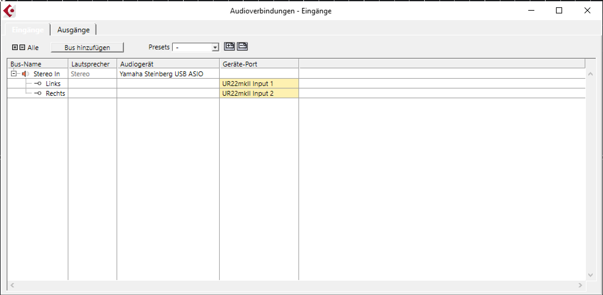 sorry, heute nimmer ... Tatort is nicht schlecht heutWenn ich im Inspector auf Eingang klicke, kann ich nur 1. "kein Bus" oder 2. "Stereo in" anwählen.