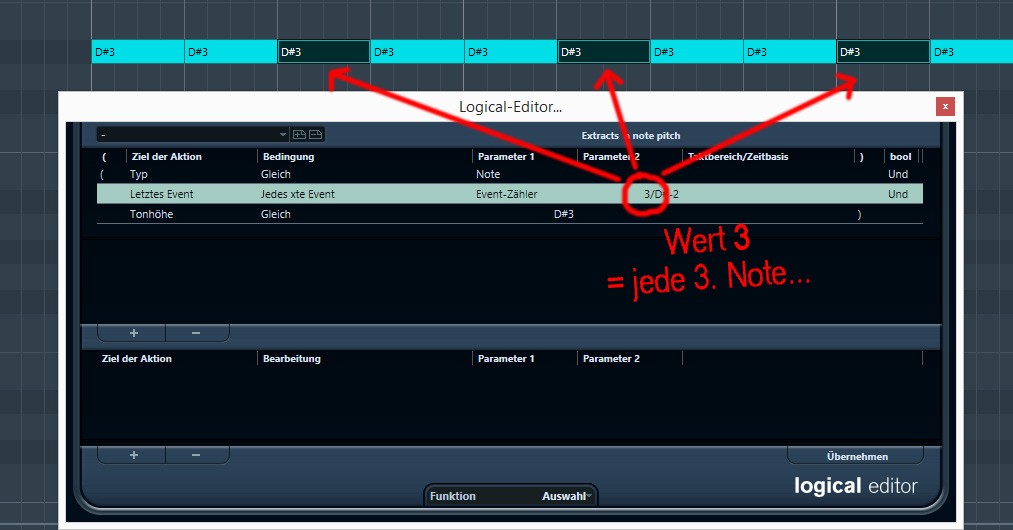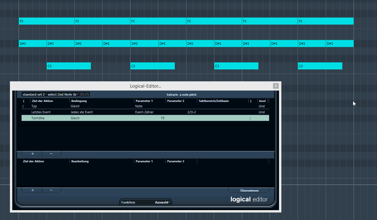 Hinweis: zur Veranschaulichung, dass auch drag/drop von Midi Noten in den Logical Editor geht, mal mit aufgenommen: