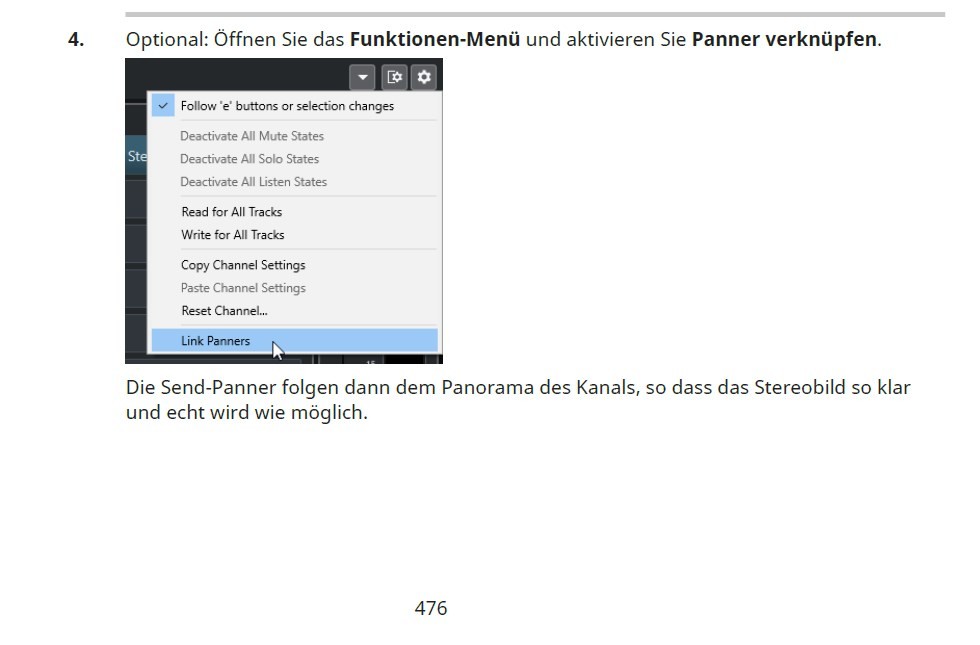 Gibt es eigentlich in Cubase eine Möglichkeit nur bestimmte Sends automatisch mit dem Main-Panner des Kanals zu verknüpfen?