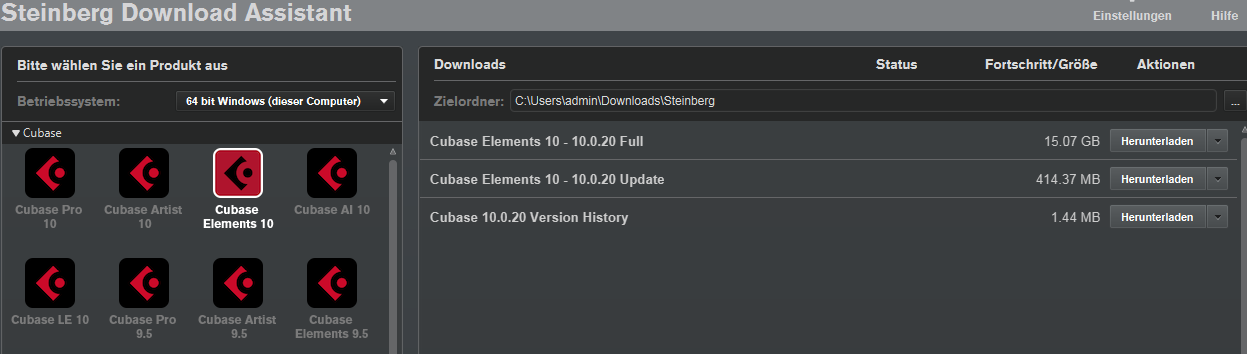 Ich hab eine Steinberg-Mail gekriegt und darin heißt es, ich muss das Programm im "Steinberg Download Assistant" herunterladen. Dort gibt es scheinbar nur diese Option: