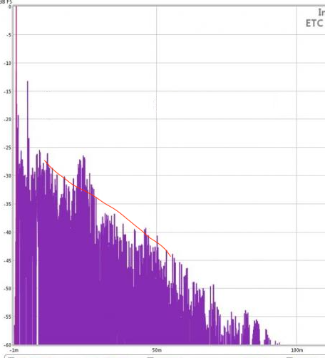 Er hat im zweiten Bild eine Linie gezeichnet, wie der Nachhall aussehen würde.das sieht mit und ohne Diffusor in etwa gleich aus.