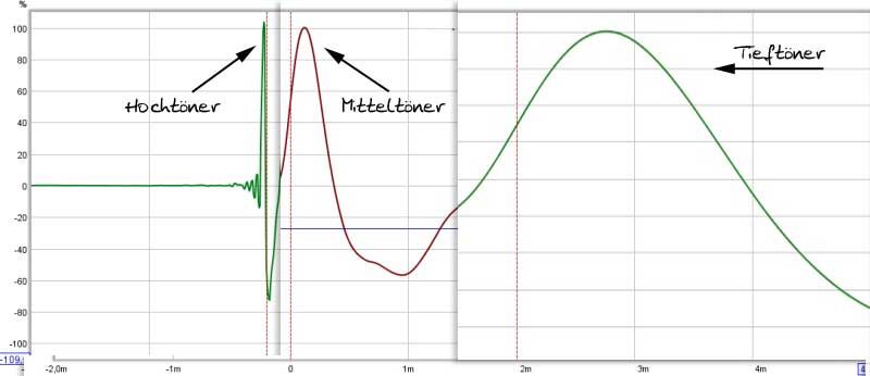 1. So ist es... Aufgrund der Trägheit des Subs kommt der Peak vom Impuls später, so wie in der normalen 3 Wege Step Response zu sehen...
