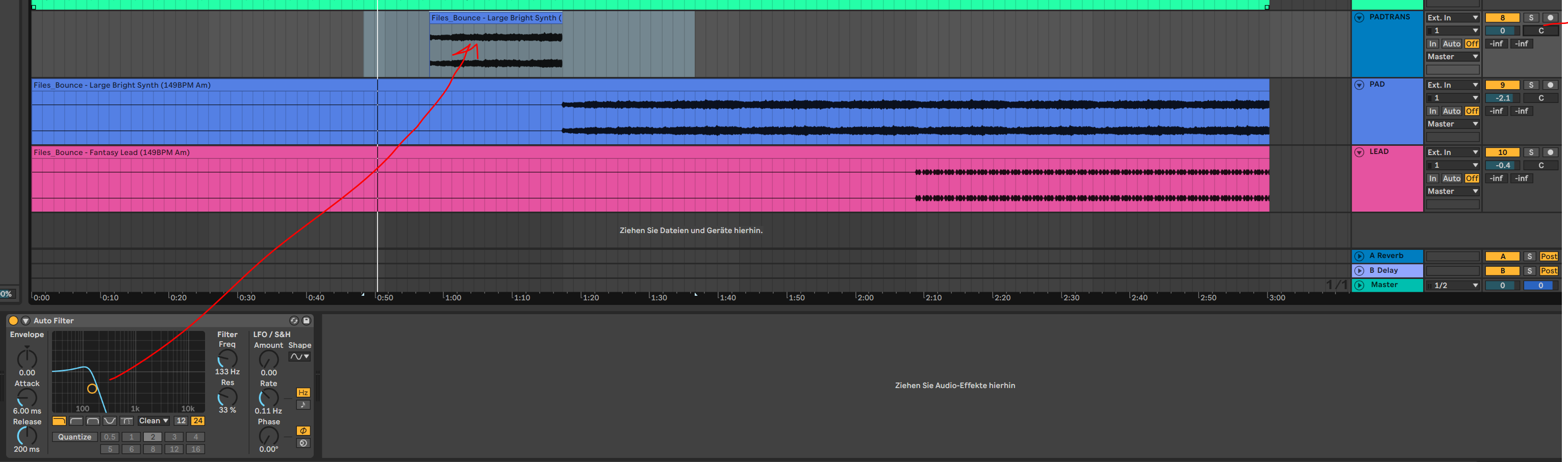 WIE! (TF!) Bekomme ich eine Filterautomation in Live aufgenommen / bzw. automatisiert, wenn ich während der Wiedergabe das gelbe Böbbelsche mit der Maus bewege?