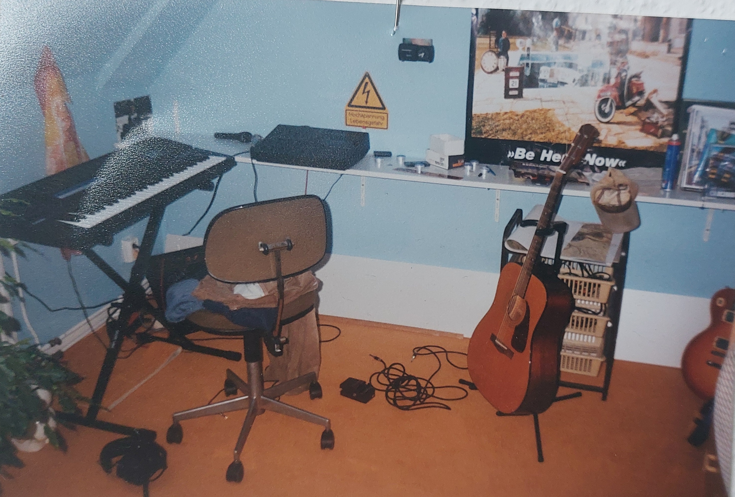 einem aus der Kindheit weiter existierenden Casio CT-670 Keyboard (dem eine Lern VHS Kassette von Richard Kleidermann beilag) und einem Schlafzimmer, dass in der Ecke eine dieser Billig Regale mit Metal Haken an der Wand hatte.