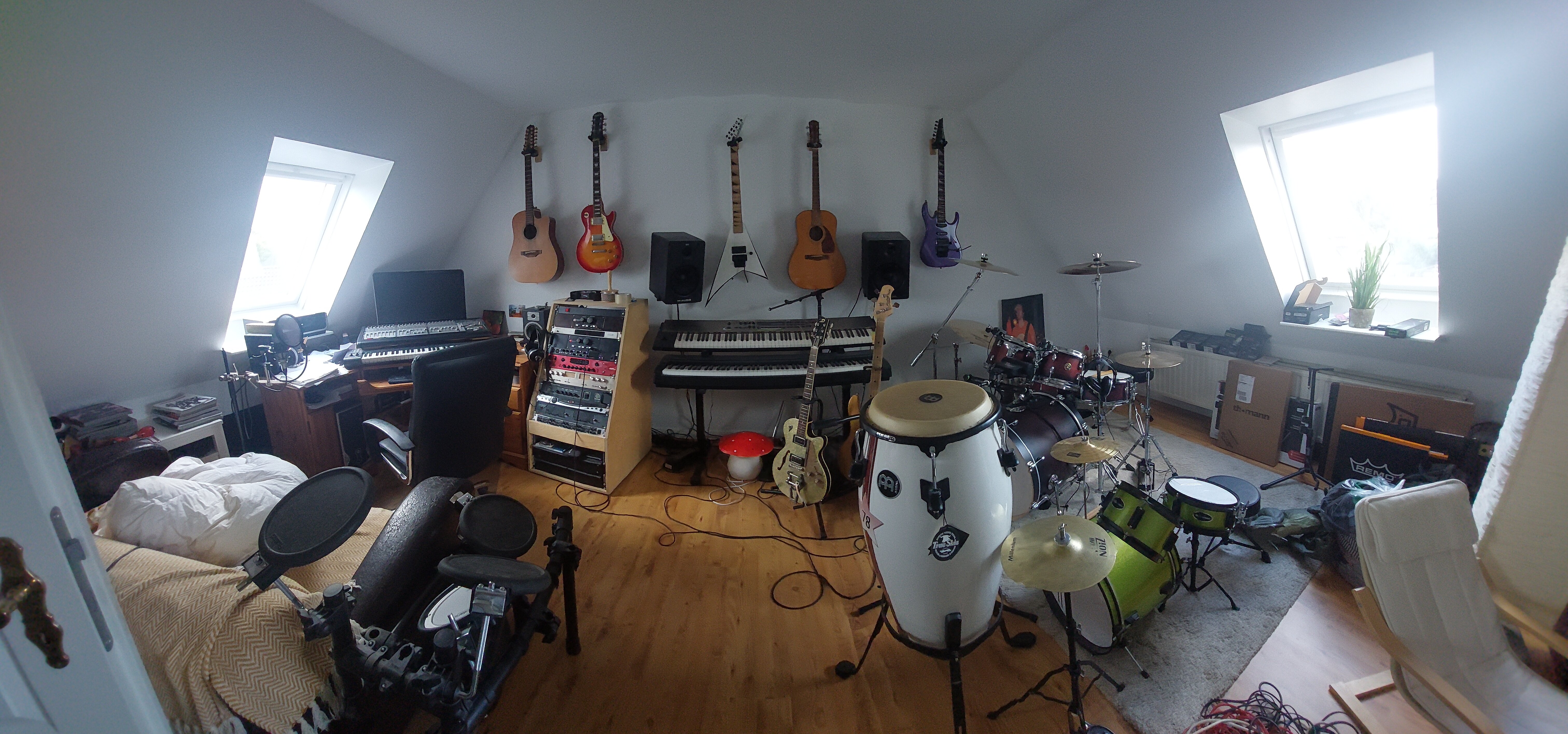 Es kam ein Synthesizer hinzu (Roland Rs9), irgendwann dann ein Roland td4, was mir das rumkloppen auf der Synthitastatur ersparte, wenn Drums benötigt wurden.