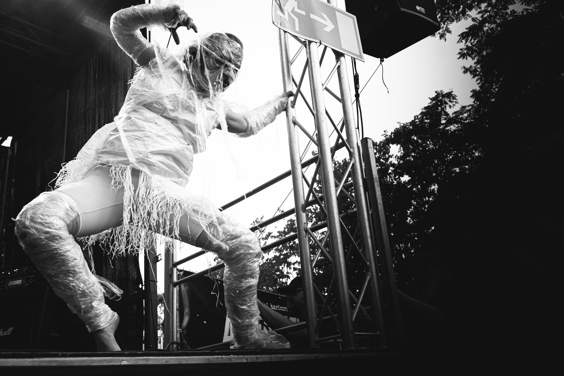 Und dann sind auf einmal zwei Plastikfrauen auf die Bühne.