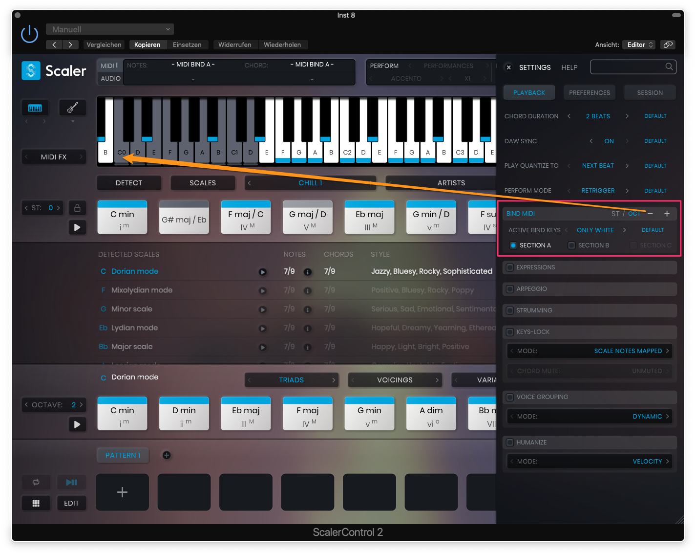 Ezkeys soll also seine Styles mit den in Scaler erstellten Akkorden abspielen.
