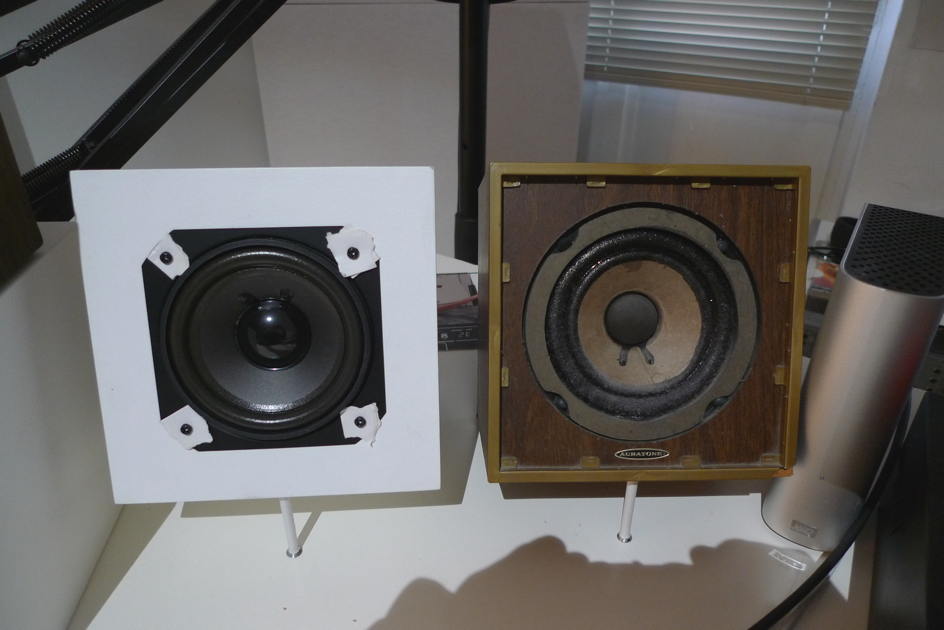 Mein Paar Auratones hab ich mal für´n Appel und ´n Ei irgendwo mitgenommen. Ich fand den Sound erst albern, bis ich mich eingehört hatte und irgendwann das Arbeiten mit dem beschnittenen Frequenzgang verstand habe. Nun einfach einen einzelnen alten als Ersatz zu besorgen macht wenig Sinn, da es dermaßen viele verschiedene Versionen mit diversen Treibern gibt. Ein neues Paar für 400,- zu kaufen finde ich auch doof, weil die ganz andere Höhen zu haben scheinen und ich das nicht gebrauchen kann. Ein altes Vintage Paar kostet genau so viel, deshalb fand ich die Bauanleitung hier im Thread so spannend.