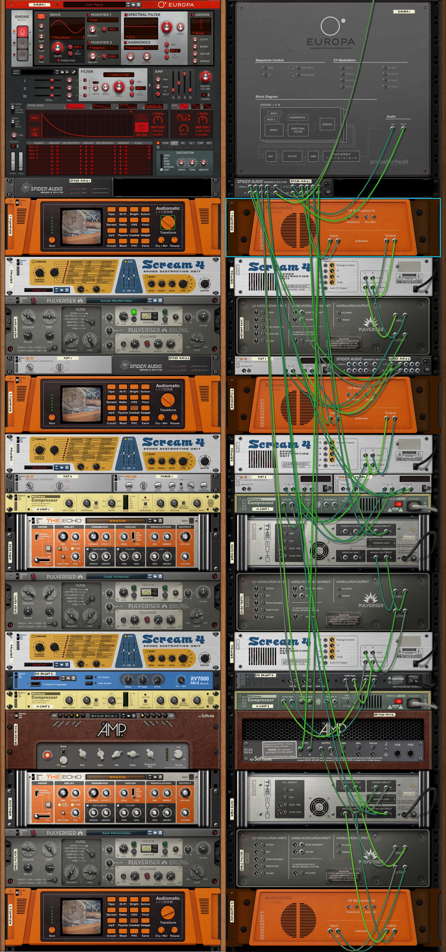 Ich habe mich daran versucht mit den Onboardmitteln von Reason seinen Effekt Chain nachzubauen. Ist jetzt nicht so das Wahre geworden, aber wenn man sich da mehr Mühe gibt und etwas rumtweakt, kann man sicherlich was brauchbares hinbekommen. Das hier kam bei raus: ...
