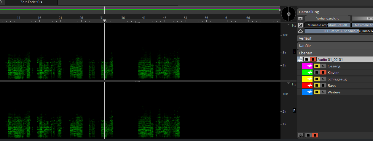 Und als ich diese unteren mit den oberen Piano Anteilen endlich mischen konnte, kam die Erlösung: Jetzt klingt das Teil ENDLICH ungefähr so, wie es sein muss. (Gemessen an der Monoquelle) Es waren tatsächlich diese Frequenzen und das Piano Spiel selbst, die gefehlt haben.