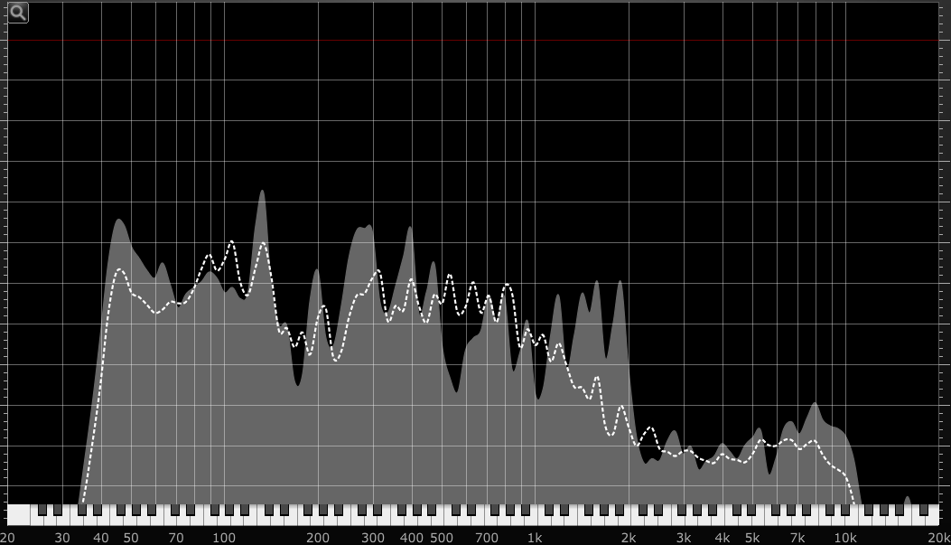 Das ist direkt von Soundcloud aus deinem Song.Sind das jetzt die Frequenzen aus dem Song? Zeigt die gestrichelte Linie den Gesamtverlauf (über die Zeit) an? Was liest du daraus? Ich sehe erst mal, dass es ab 2 kHz einen signifikanten Abfall gibt. Ich verwende für die Analyse den Visualizer von Izotop, da fällt dieser Abfall nicht so signifikant aus....