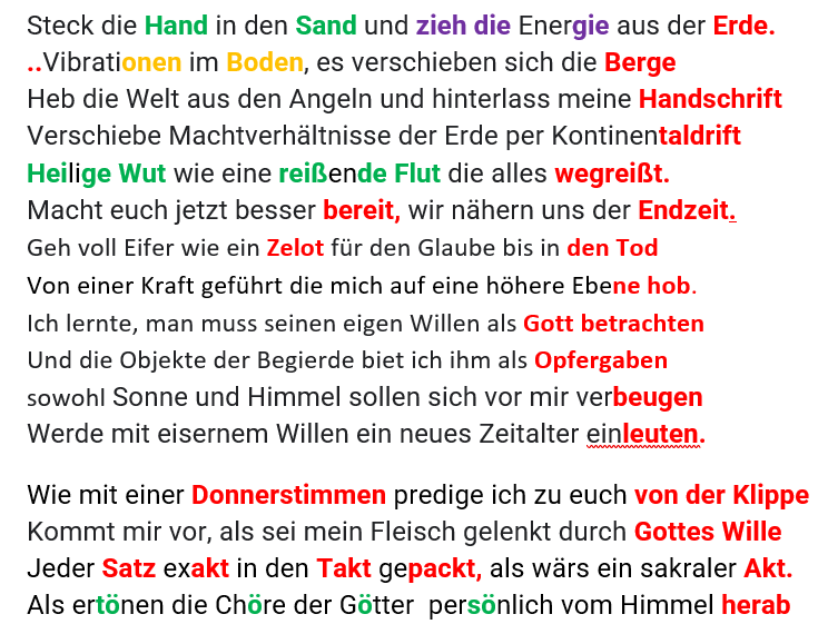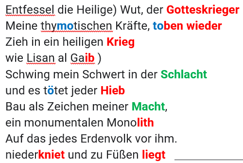 Ich versuche jede Silbe relativ gleichmäßig auszusprechen. Ist der Fehler den ich mach, dass ich dies nicht gut hinbekomme?Dazu fällt mit im Augenblick kein Beispiel ein. Und selbst wenn das der Fall wäre, kannst Du ja bis dahin nicht völlig ohne Timing rappen. Das ist ja genau das, was den Leuten negativ auffällt.