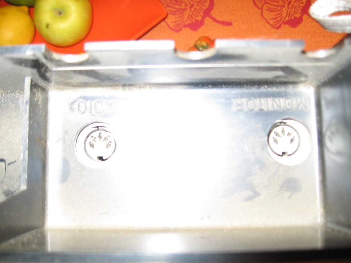 Auf der Vorderseite befinden sich zum einen zwei 5-Pol. DIN-Anschlüsse ([g=116]Mikrofon[/g]).