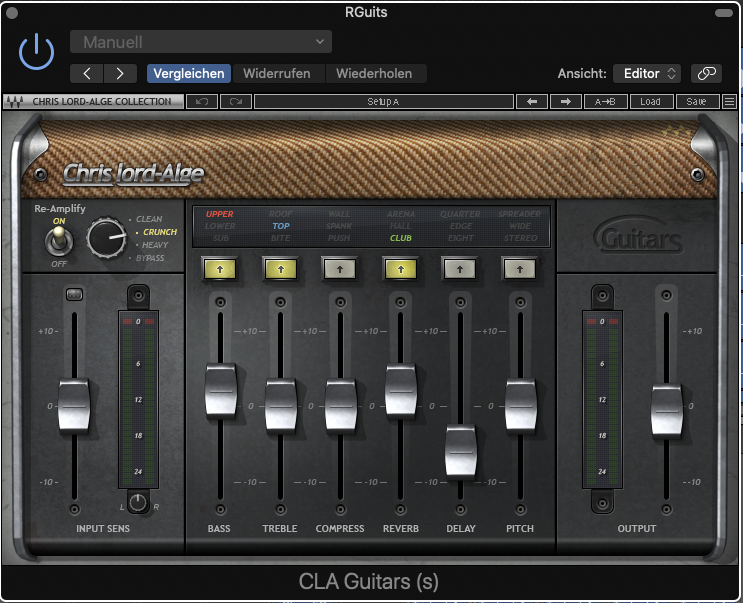 – Bei den Gitarren habe ich nochmal eine oben drauf verzerrt mit Waves CLA (siehe Screen)