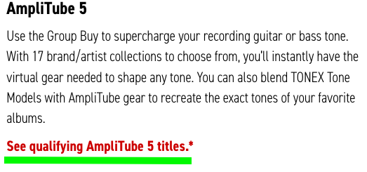 In diesem Fall nicht. Also zumindest nicht bzgl. der Amplitube Geschichte. Wenn da nicht irgendwelche mit dem BPB verbandelten Leute irgendwie rumgemacht hätten (ich sage explizit nicht "rumgetrickst", denn es könnte ja einfach Zufall gewesen sein), dann wäre niemand jemals auf die Idee gekommen, sich ausgerechnet Amplitube zuzulegen, um am Groupbuy teilzunehmen.