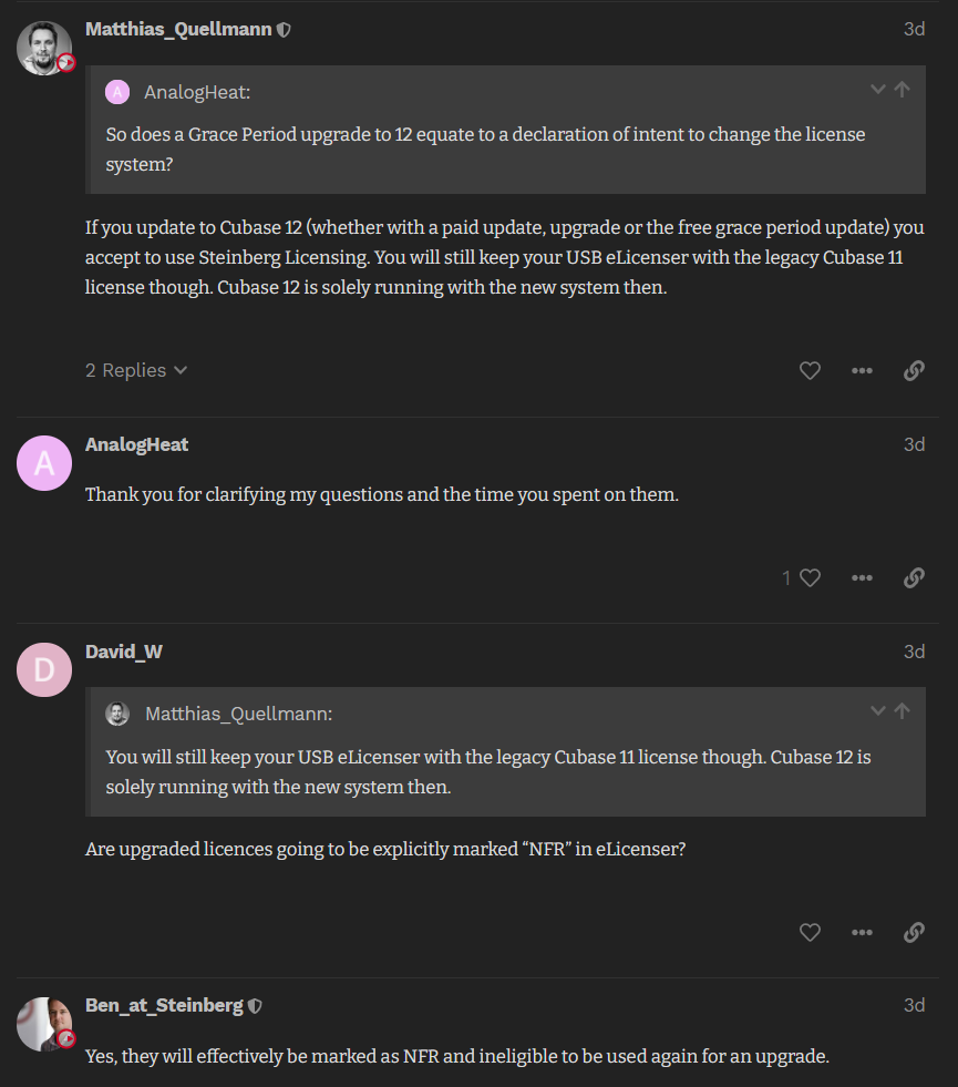 Ich denke mal die Non-Profits können sich freuen, weil kein Dongle mehr benötigt wird.Bin gespannt, wie viele Non-Profit-Homerecordler Cubase/Steinberg dann noch treu bleiben und wie sich das wirtschaftlich auswirkt.