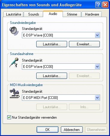 Seitdem ich mein neues Audiointerface EMU 0404 installiert habe, kann ich mit keinem Recordingprogramm mehr aufnehmen. Ich kann maximal WAVE als Soundquelle auswählen, kriege aber auch da kein Signal. Ich hab mal verschiedene Programme ausprobiert: 3 verschiedene Audacityversionen, sogar Wavepad, Recordpad, Nero Wave editor... überall das gleiche Problem; egal ob ich was von [g=539]Cubase[/g] aus laufen lasse oder es der einfache Mediaplayer ist.