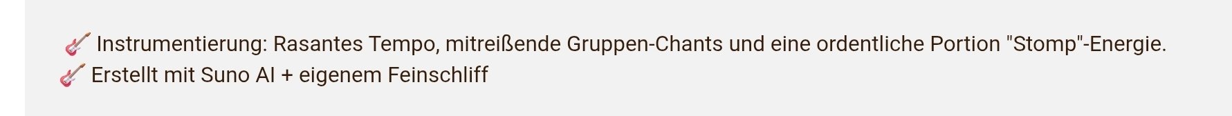 Man mutet ja eigentlich dem Hörer zu, mehr Zeit für das Hören zu investieren, als man selber für das Eingeben des Promptes gebraucht hat. SUNO haut mit einem Prompt 4 Songs á 5 Minuten raus. Das Eingeben des Promptes dauert vielleicht 10 Sekunden, das Generieren nochmal 10 Sekunden. Könnte man ein Skript schreiben was im Dauerfeuer Songs generiert und auf Distrokid hochlädt oder so