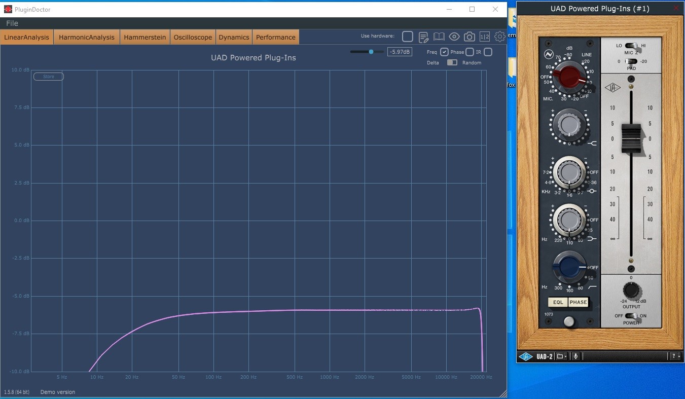 Wer den UA 1073 als Plugin hat kann ja einfach mal rosa Rauschen drüber laufen lassen und im Analyser zusehen wie sich der Frequenzgang biegt sobald man die EQ Bänder aktiviert.