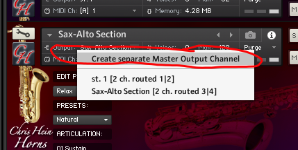 In Kontakt habe ich 2 Stereo-Outputs angelegt und in Cubase diese entsprechend als Ausgang konfiguriert.