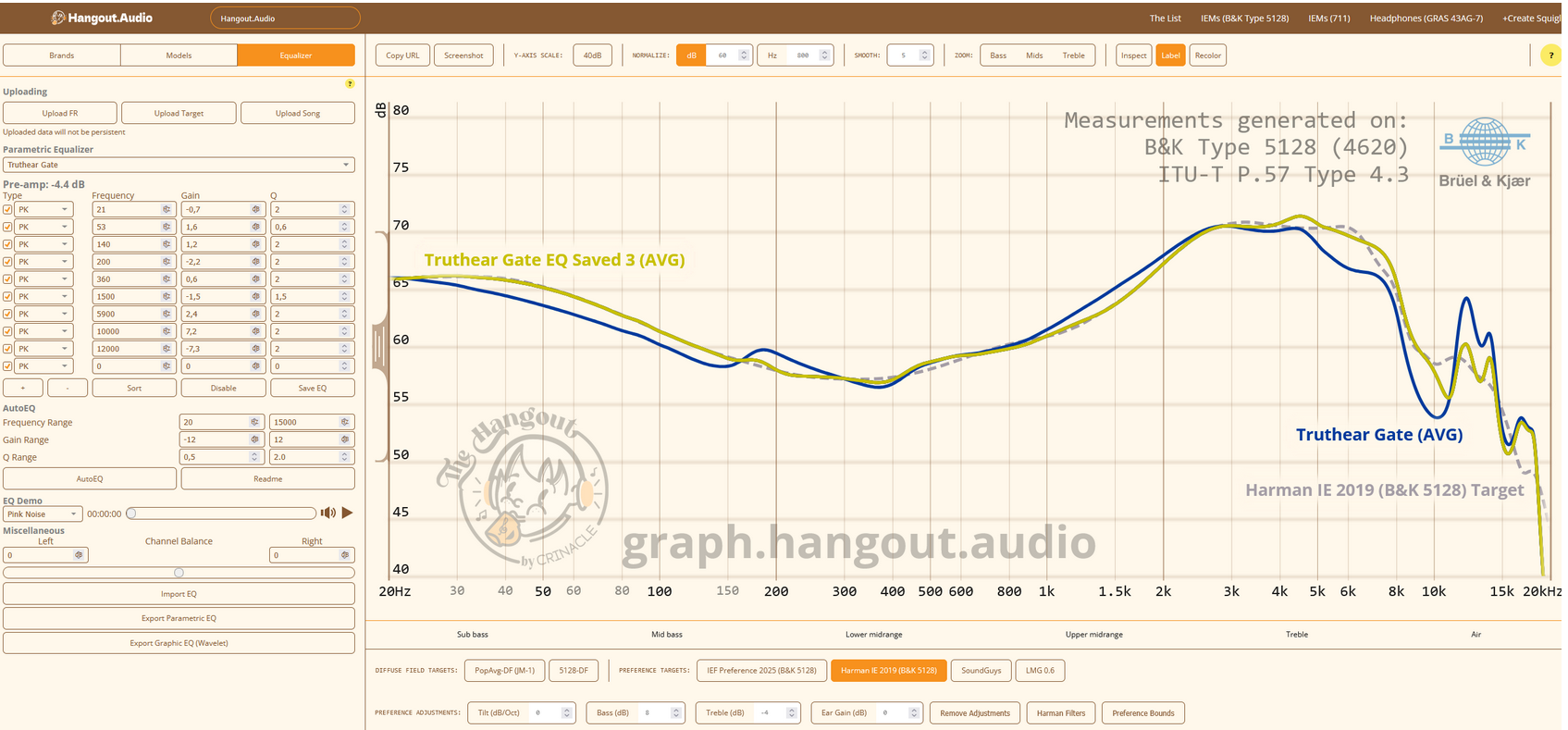 Das sind die Werte. Falls du die Seite nicht kennst, ist ganz praktisch zum EQ basteln! Haben die meisten Kopfhörer als eingemessene Kurve in der DB. Kost nix.